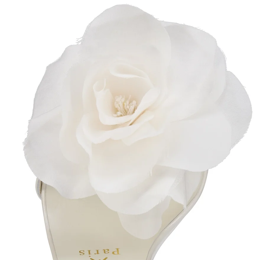 The Miss Z Flora Sandal Has an Elegant Silhouette. Set on a 100 Mm Stiletto Heel That Reveals Its Iconic Loubi Red Sole, This Maison Christian Louboutin Sandal is Crafted from Ivory and Bianco White Pearlescent Lamb Nappa Leather and Crepe Satin, and Has a Padded Insole. It Has an Open Toe and a Slim Heel Strap, the Toe Strap is Adorned with a Crepe Satin Oversized Flower, an Artful Nod to Bridal Florals. This Model is Part of the Bridal Collection and Features an ‘Everlasting Red’ Sole Thanks to an Innovative Coating Technique to Ensure Resistance and Lasting Vibrancy for Our Signature Louboutin Red. The Insole Bears a Gold Heart-Shaped Stamp, Along with the Christian Louboutin Signature.