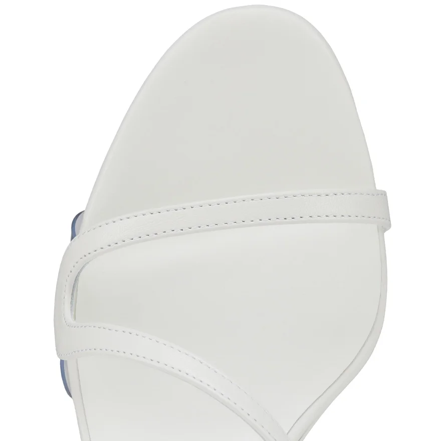 Maison Christian Louboutin’s Rosalie is a Striking Sandal with a 55 Mm Kitten Heel and an Audacious Slender Strap That Curves in a Wave over the Foot, Elongating the Leg and Recalling the Christian Louboutin Logo. This Model is Crafted Bianco White Leather and Pvc and Finished with Tonal Lining for a Summery Appeal.