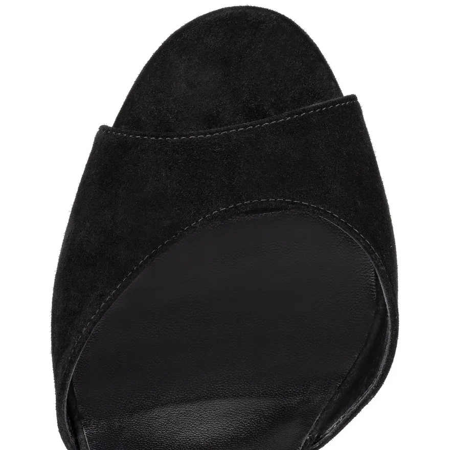 With Its Open Toe, the Sandaloo Elegantly Reveals the Foot. This Platform Sandal by Maison Christian Louboutin Features a Slim Ankle Strap and is Set on a 130 Mm Square Heel. It is Entirely Crafted in Black Veau Velours.