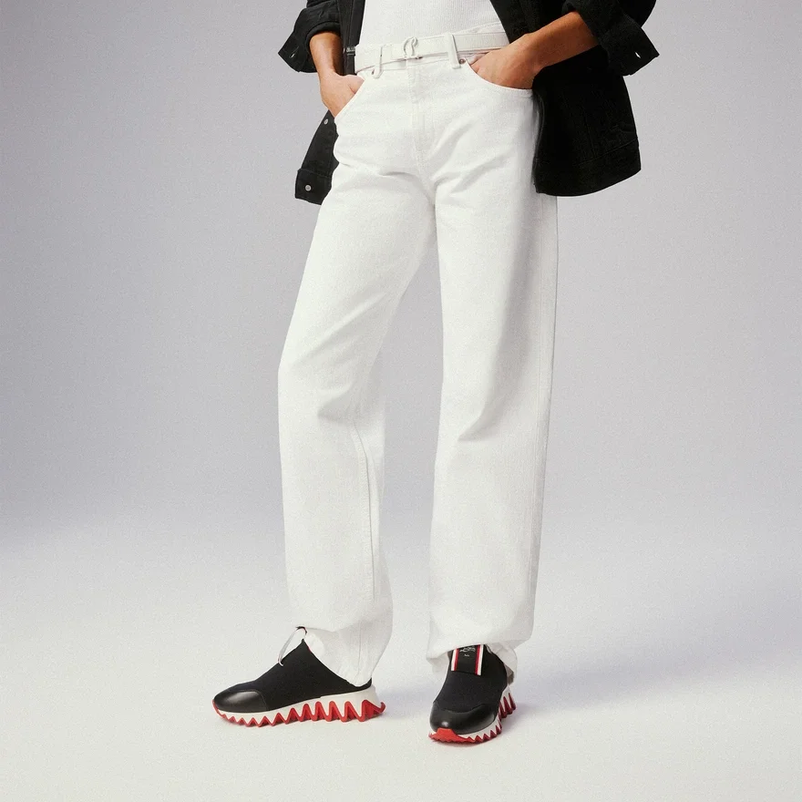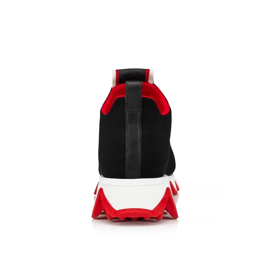 The Bold and Refined Lines of the Tiketa Run Sneaker Focus on a Combination of Textures and Colors. This Model, Set on a Red and White Serrated Neoprene Sole, Highlights the Expertise and Creativity of Maison Christian Louboutin. It Has a Tricolor Label on the Tongue Which Gives a Sophisticated Look to This Black Calfskin Shoe.