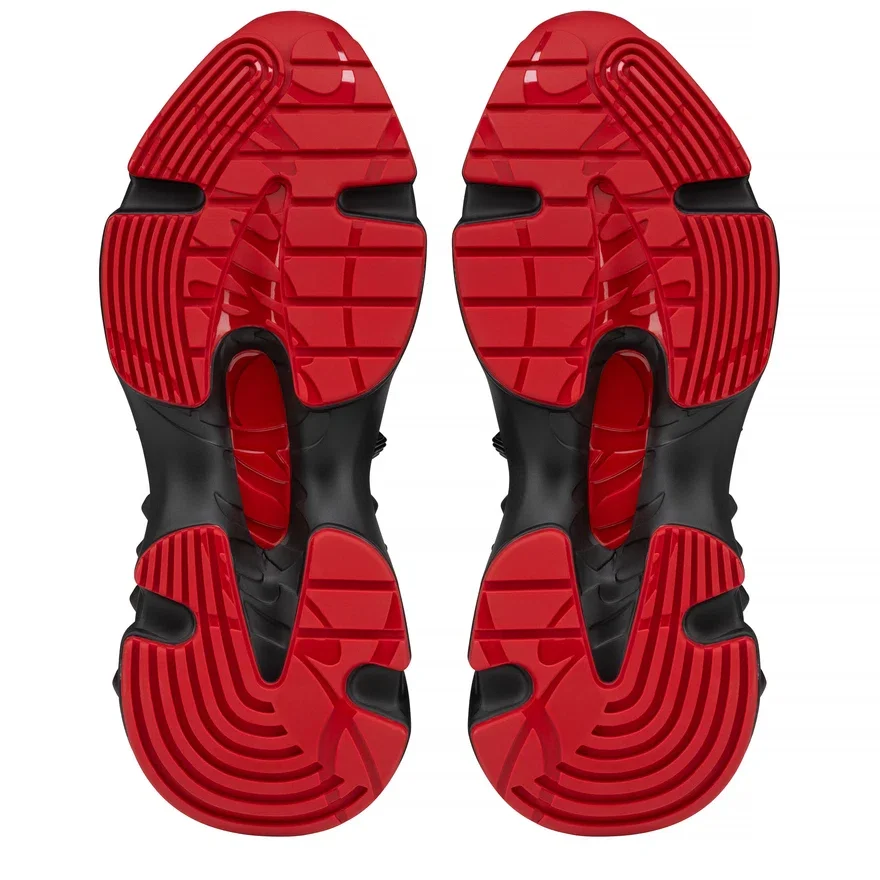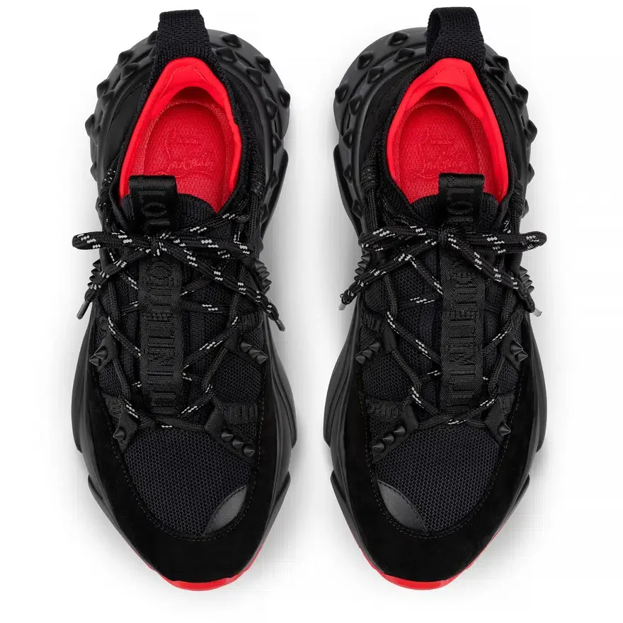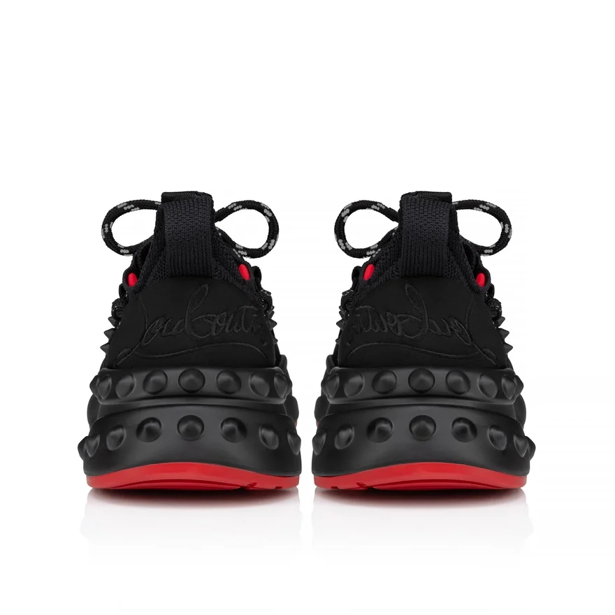 A Lightweight Running Shoe, the Trailnrun Women’s Model is a Low-Top Sneaker. Inspired by the Lines of a Hiking Boot, It is Set on a Sole Accented with Loubi Red Piping. This Contemporary Black Model by Christian Louboutin Blends Calf Leather, Fishnet and Neoprene. It Has a Heel Tab and Spikes.